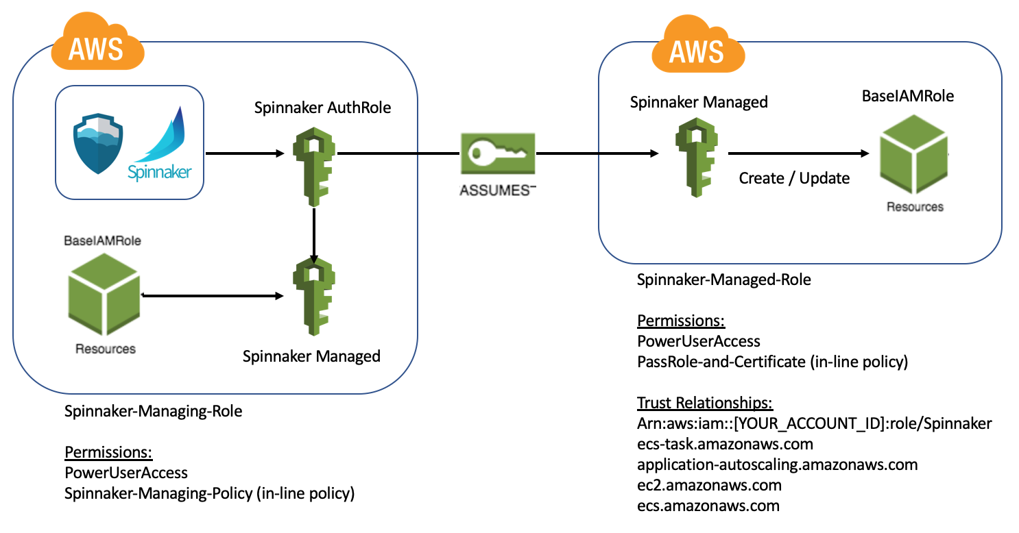 { "Version": "2012-10-17", "Statement": [ { "Effect": "Allow", "Principal": { "AWS": "arn:aws:iam::[YOUR_AWS_ACCOUNT_ID]:role/Spinnaker-Managing-Role", "Service": [ "ecs.amazonaws.com", "application-autoscaling.amazonaws.com", "ecs-tasks.amazonaws.com", "ec2.amazonaws.com" ] }, "Action": "sts:AssumeRole" } ] }