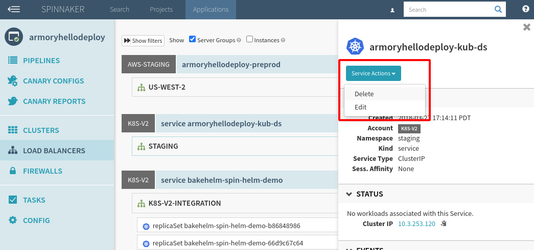 Note: You can only delete Load Balancers if they do not have any instances attached to them.