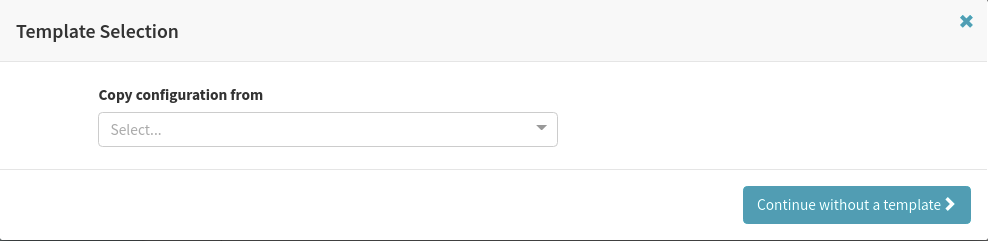 3. Because this is a new application, do not choose to copy a configuration from a template. Press the Continue without a template button.