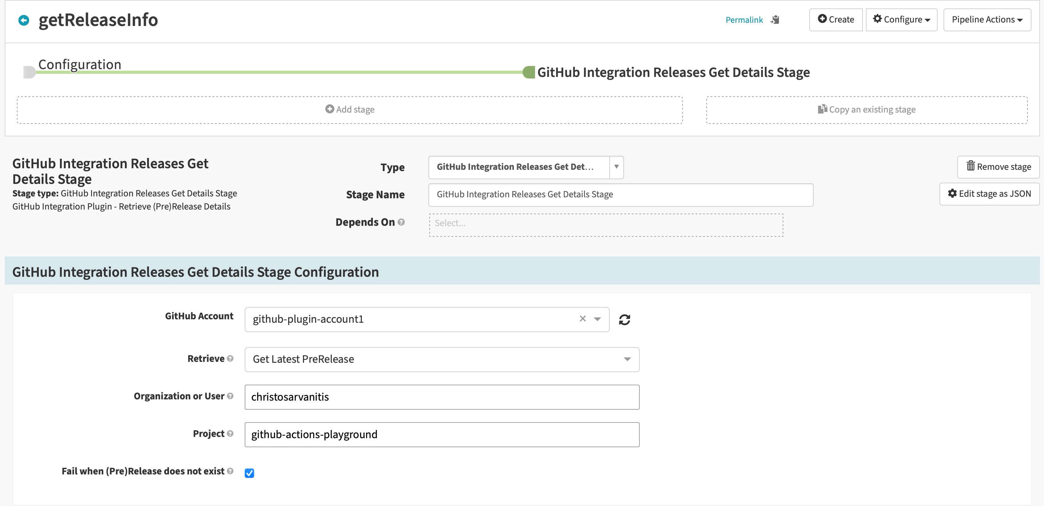 Configure the GitHub Integration Commit Status Stage as in the following screenshot: